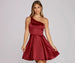 Get flirty in our Rosabel Party Dress! She has a one shoulder neckline. a thin strap that crosses over in the back. and a fitted bodice with a zipper closure. Her skirt meets high waist and flows out with the help of a partial tulle lining. She is composed of a satin-like material that offers moderate stretch with a relaxed fit.