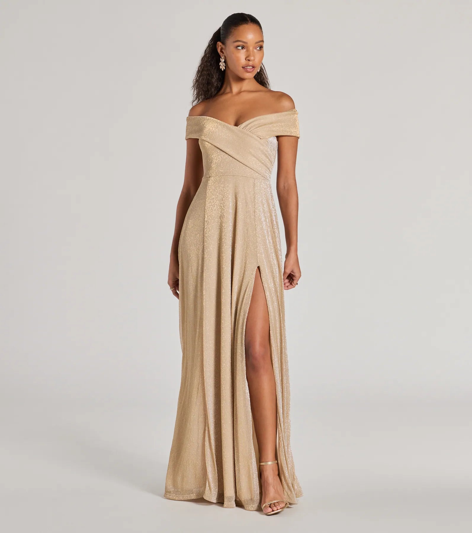 Featuring a subtle glitter knit lace composition and a gorgeous ribbon rhinestone belt. Rosella is every bit of glam and romance combined in one. Complement with a pair of gorgeous and sparkly duster earrings to further elevate your look.Â