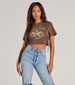 Channel that trendy western vibe with this cropped graphic tee featuring a crew neck. short sleeves. bold lace-up sides. and a cowboy and horse graphic in desert scenery with the script "Rough Rider" in a rope-like font. Style with distressed jeans and booties!