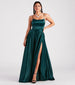 Make a grand entrance at your next fancy affair in the gorgeous and chic Rylan satin formal dress! She features a sleeveless square neckline with a built-in padded bust. adjustable spaghetti straps. an open back with a strappy lace-up design. a fitted high waist. a floor-sweeping hem with a high side slit. and a flowy A-line silhouette. The smooth satin woven fabric includes a full-length woven lining. Complete the look with rhinestone statement earrings.