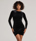 Unveil a glitzy look that will turn heads in the Salma formal mini dress designed with smooth velvet fabric and gorgeous rhinestone fringe trim at the bold open back. The short dress features a crew neckline. long fitted sleeves. a ruched faux wrap-front design at the waist. and a bodycon silhouette to showcase your stunning curves.