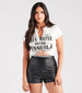 Do your part to conserve! This graphic crop tee features short sleeves. a crew neck with a notch cutout. a front script that reads." Save Water/Drink Tequila" and a slashed hem on stretchy cotton fabric. Style with trendy distressed denim shorts for a bar crawl.