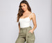Get sealed in this cute bodysuit to create an effortlessly glam outfit! The bodysuit features a sleeveless scoop neckline. tie-up shoulder straps. and a dual-snap button closure. The bodysuit is composed of a ribbed knit fabric that offers a form-hugging fit with a moderate stretch. Complete look with high waist jeans and mules.