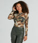 Transition through the seasons in this artsy abstract floral mesh crop top perfect for elevating your outfits on date nights or art walks downtown! Crafted from a sheer mesh fabric boasting an abstract floral print. this top features fitted long sleeves and a classic crew neckline while the cropped hem flaunts your figure. Complete the look in high-rise faux leather pants and mules!