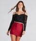 Send your love to every admirer looking completely smitten in this velvet off-the-shoulder bustier top! Sheer-fitted long sleeves. adjustable spaghetti straps. and a sweetheart neckline create a flattering silhouette. while the ruched and padded bust. hook and eye closures. and cropped hem make this piece comfortable and stylish. The burnout velvet pattern will add a touch of glamour to any occasion. Complete the look in sleek faux leather pants.