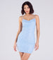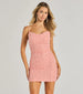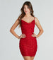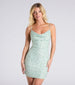 This sensuous mesh cowl mini dress is sure to turn heads with its glamorous faux pearl and colored rhinestone embellishments. Featuring an adjustable spaghetti strap design. bodycon silhouette. and a mini-length hem. this sensational dress is perfect for your next night out! Complete the look in strappy rhinestone heels.