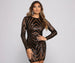Showcase your beauty in this stunning sequin mini dress! It features long fitted sleeves. a short. curve-hugging silhouette. and an intricate design of sequins on a sheer mesh fabric with a knit lining. Pair this dress with a sleek ring set to add even more glam for your night out.