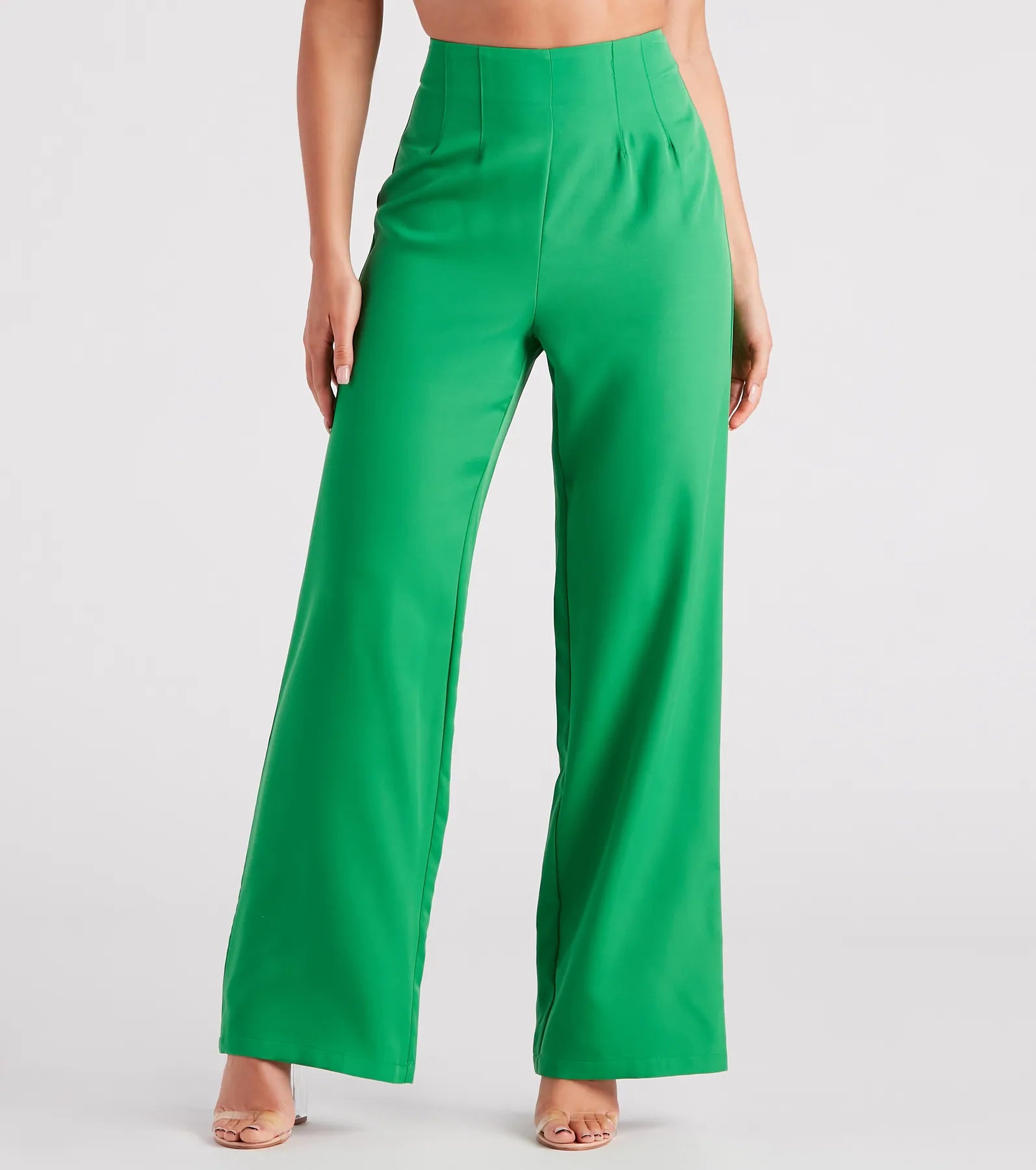 Show them your trendsetter status in these high-waist dress pants! They feature a flattering high-rise waist and a wide-leg silhouette. Style these pants with the matching blazer for a chic ensemble.