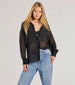 Get ready to rock the sheer ambition long sleeve collared blouse. With its mesh fabric. button-down front. and bishop sleeves. this oversized fit is your go-to for effortlessly chic vibes.