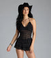 You're in for a stylishly good time in this sheer lace romper at festivals or concerts! It boasts a sultry open strappy back and a sheer bodice that flaunts your figure.