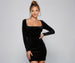 Create an alluringly chic formal night-out look in the stunning Shelby bodycon dress. She features a trendy square neckline. long fitted sleeves. a flattering high waist. and a mini-length. curve-hugging silhouette. The luxe velvet fabric features all-over rhinestone embellishment for a glamorous sparkle. Complete the outfit with strappy stilettos.
