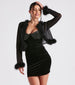 Everyone will be thinking about how fabulous you look in this glitter mesh bolero perfect for layering over your outfit! It features sheer long sleeves with marabou trim cuffs. an open-front design with marabou trim. and a cropped hem. Style over an LBD for a date night!
