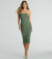 Flaunt your look with ease and chicness with this midi dress this season! The knee-length dress features a strapless neckline. a flattering bodycon silhouette. and a fitted maxi-length hem on soft and stretchy rib knit fabric with a short knit lining. Style with the matching bolero and heels for weekend plans!