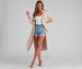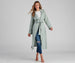 Cooler temps call for effortless style! Layer on this linen trench coat for an elevated look. It features long sleeves with button closures. a draped. collar neckline. and an open-front design with belted waist and slit accents along the long hem. Complete the look in a bodysuit and jeans.