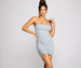 Shine on in this glitzy dress that brings the dazzle. The mini dress features a sleeveless square neckline. ruched side seams for a customized fit. and is composed of a glitter knit fabric. Complete your look with rhinestone earrings.