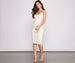 Shine on in a sequin midi dress that brings the glamour. The dress features a sleeveless V-neckline. adjustable spaghetti straps. and a geometric sequin pattern. The dress is composed of a lined mesh fabric that offers a form-hugging fit with minimal stretch. Complete look with a dainty rhinestone bracelet.