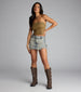 Serving attitude with a twist. This ruched side-tie skort gives major vintage edge with convenient built-in shorts. perfect for your off-duty model fits.