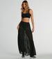 Sit pretty in this chiffon maxi skirt for effortless elegance on vacation or a weekend escape! The high-rise elasticized waist. flowy tiered silhouette. and maxi-length hem create a flattering look on sheer chiffon fabric. Complete the look in a crop top.