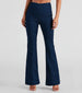 Slay the day in these 60s-inspired denim pants that show your curves some love! They feature an elasticized high-rise waist. front side hidden zipper closure. back pockets. a hip-hugging silhouette. seam front. and back details. and a flared hem. Complete the look in a bodysuit and heels.