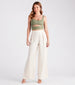 Sleek and sophisticated. these satin wide-leg pants will stylishly elevate your look. They feature a high-rise waist. front pleating. a wide-leg silhouette. and a relaxed fit. The satin woven fabric has minimal stretch. Pair with a basic bodysuit and strappy mules.