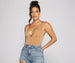 Lace-up in this sleek bodysuit that brings the luxe! The bodysuit features a plunging sleeveless V-neckline. tank-shoulder straps. a lace-up bodice with a slinky chain-link. and a dual snap button closure. Complete look with high waist jeans and mules.