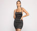 Keep it sleek and chic in a satin dress that elevates your night-out outfits! The dress features a plunging square neckline. sleek spaghetti straps that lead to a sexy open back. a bar strap tie accent. and ruched side seams that enhance curves. Complete your look with sleek stilettos and hoops.