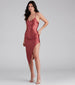 Showcase a sleek style in this sultry sleeveless knit dress! It features a V-neckline. spaghetti straps. ruched detailing down the sides. a mid-length asymmetrical hem to show some leg. and a curve-hugging silhouette. Complete the look with trendy clear heels and a chic clutch.