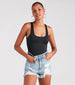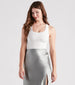 This smooth basic tank top will be a staple in your wardrobe! The crop top features a sleeveless scoop neckline. comfortable tank shoulder straps. a racerback design. and a form-hugging fit. The double-lined stretchy knit fabric offers a seamless design and has an ultra-soft buttery feel. Style with best-selling bottoms and clear heels for a chic look!