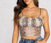 Keep it sassy in snake print bby! This crop top is all you need to dress up or dress down a look with some statement pieces for an Insta-approved look!Â