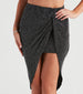 Step looking so chic in this glitter metallic knit midi skirt featuring a high-rise waist. front knot accent. form-hugging silhouette. and an asymmetrical style hem. Complete the look with the matching top for your next girl's night!