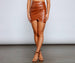 So Chic Ruched Faux Leather Mini Skirt