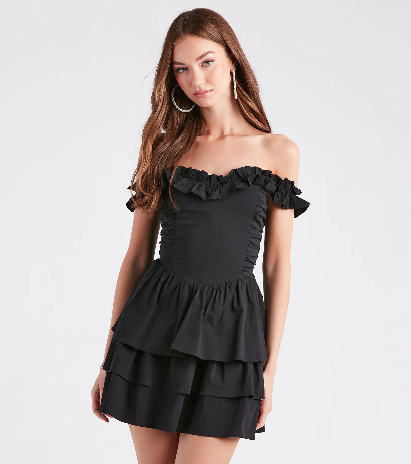 So Lovely Off-The-Shoulder Ruffled Skater Dress