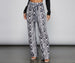 Keep your outfit looking so sassy with these flared pants that bring those fierce vibes! The pants feature a snake print pattern. a high-rise waist with a tie waist belt. a straight leg. and a flared hem. The pants are composed of a brushed knit fabric that offers a form hugging fit with a moderate stretch. Complete look with a bustier and lug heels.