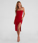 This simple knit midi dress will create the most stunning looks! The basic must-have features a sleeveless square neckline. spaghetti straps that lead to a lace-up back design. a curve-hugging midi-length silhouette. and an alluring high front slit. The smooth knit fabric offers plenty of stretch. Style this dress with sleek hoop earrings and strappy heels.