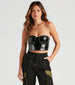 You're all booked up and ready to slay every outfit in this faux leather corset top! It features a strapless. sweetheart neckline. cropped hem. and a back zipper closure. Complete the look in chic trouser pants and mules for happy hour!