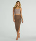 Your social calendar is filling up and this midi skirt is here to help! Featuring a high-rise waist. side adjustable drawstring. and bodycon fit. this skirt will accentuate your curves and flatter your figure. The high-side asymmetrical slit adds a touch of intrigue while the midi-length hem keeps it chic. Complete the look in sandals.