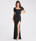 Effortlessly elegant. the Sophie glitter knit mermaid dress would be a stunning choice for a formal gala. She features a square neckline. short puff sleeves. a partially open back with a lace-up strappy design for a customized fit. a high waist seam. a floor-length hem. and a mermaid silhouette with a high front slit to showcase your heels. The glitter knit fabric offers a moderate stretch. Complete the look in this long dress with rhinestone statement earrings.