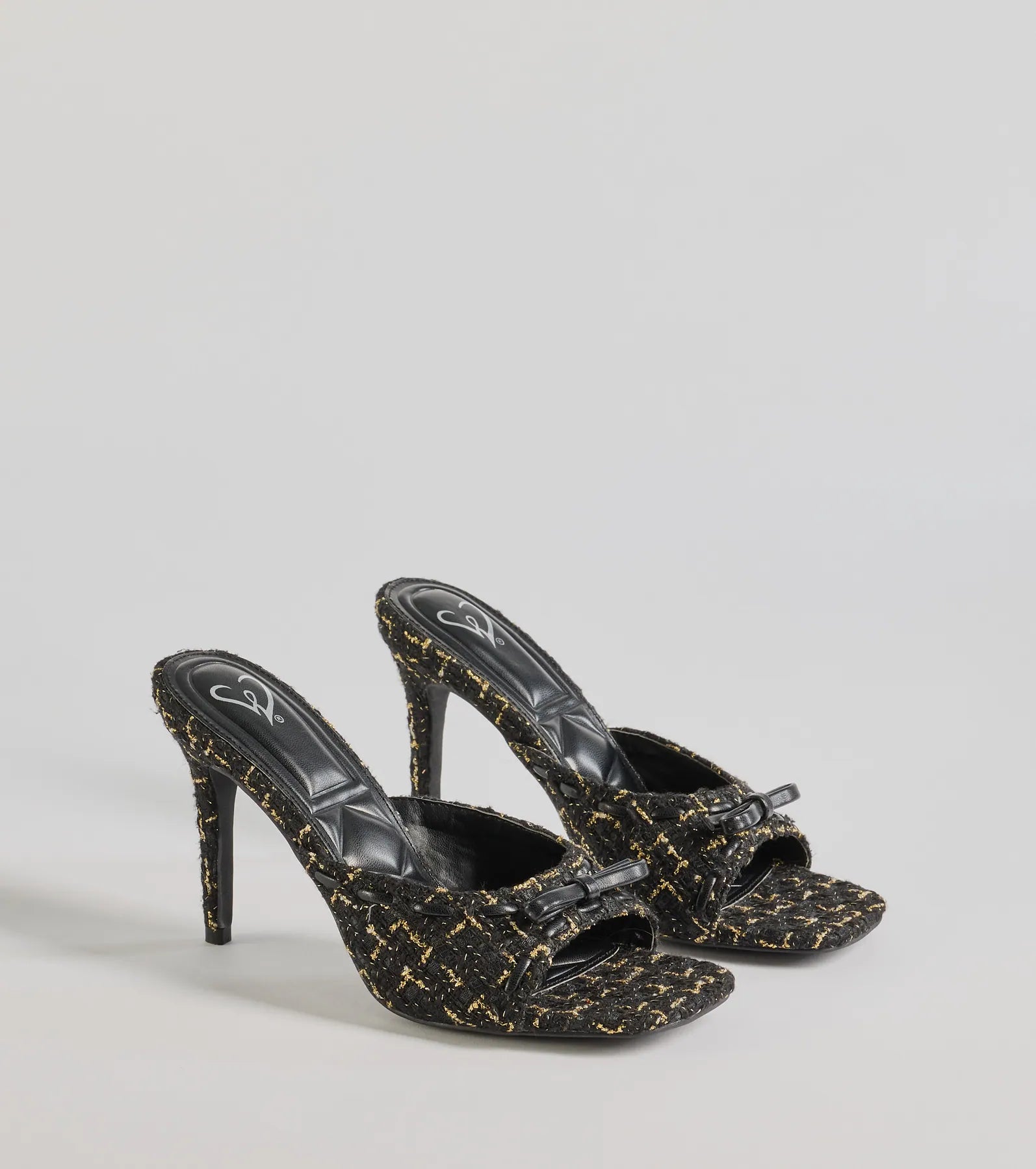 Dazzle in these mules shoes. With a chic stiletto heel. open square toe. and mini bow accent. these mules bring luxe vibes to every step.