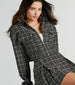 A tweed plaid shacket perfect for adding a touch of sophistication and posh for afternoon tea or a dressy brunch! This chic jacket features long button cuff sleeves so you can style the sleeves and a flattering collar neckline. The zip-up closure and flap pockets add practicality to the statement tweed plaid woven fabric. Complete the look with the matching bottoms and a cute mini purse!