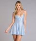 Serving sparkle with a side of sass—this glitter satin skater dress is made for your spotlight nights. The flirty open-back tie and twirl-worthy hem keep it playful and unforgettable.