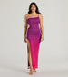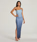 Leave everyone in awe when you're in this ombre maxi dress for sunset cocktails! Featuring a unique one-shoulder neckline with an adjustable spaghetti strap and flirty side cutout. this dress hugs your curves and shows off your legs with a high-side slit along the maxi-length hem and form-hugging silhouette. Complete the look with sparkly bracelets.