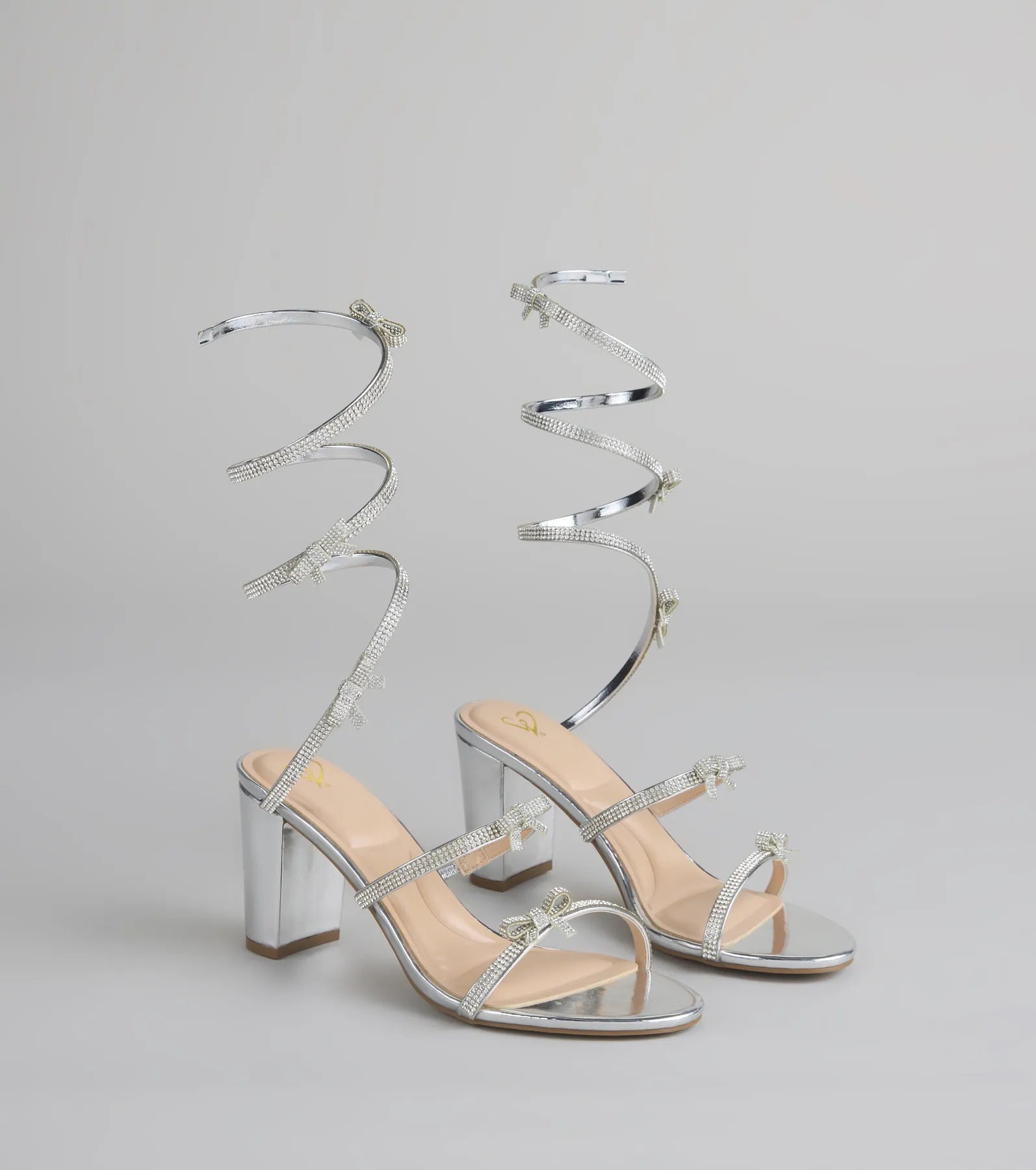 These heels are the definition of a glow-up—literally. Wrapped in rhinestones and dotted with dainty bows. they're the kind of shoes that get compliments before you even walk in.