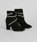 Spoil yourself and get these faux suede booties for an edgy glam look! They feature a pointed toe. a rhinestone-embellished wrap design. an inner zipper closure. and a block heel. Style with a faux leather jacket for dinner and drinks downtown!