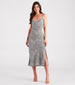 You can be spotted all season in this leopard print midi dress perfect for a casual lunch or a wine night with friends! It features a sleeveless V-neckline. tank shoulder straps. and a form-hugging. slim silhouette with a flowy slit hem. Complete the look in sleek statement hoop earrings and sandals.
