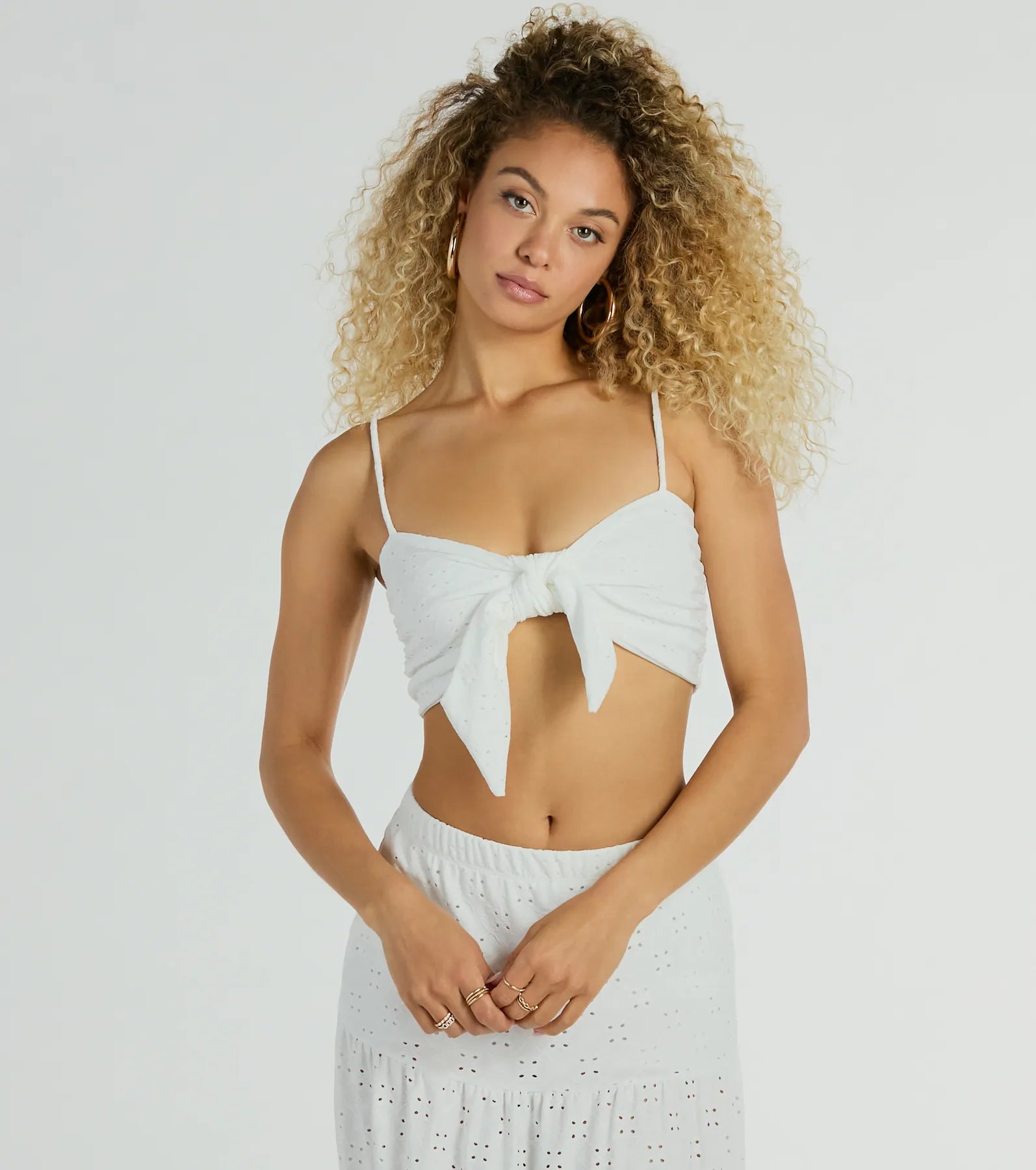 Spring Breeze Sweetheart Tie Eyelet Crop Top