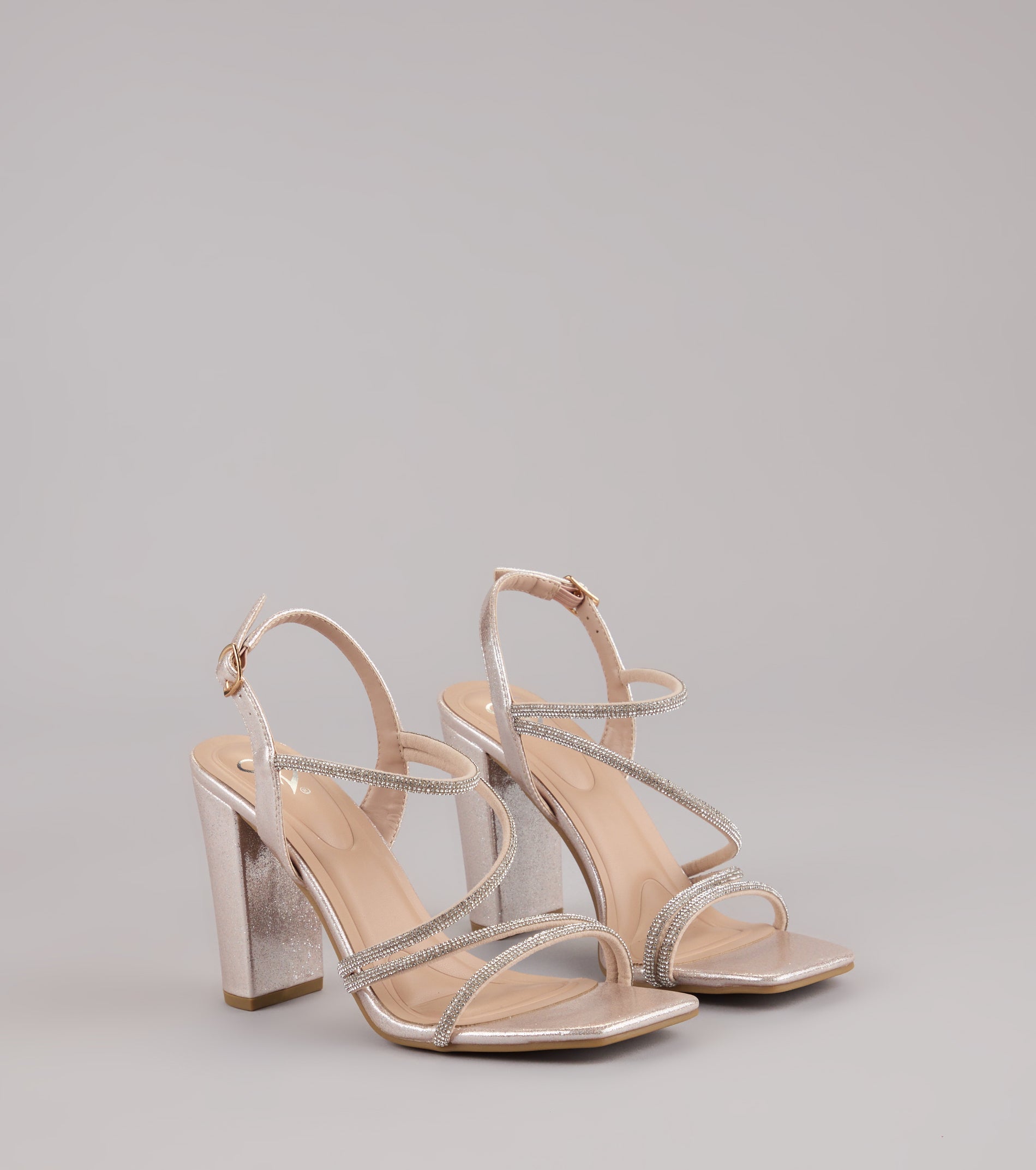 Made for grand entrances and sparkling on the dance floor! These strappy block heels bring shimmer. style. and the sparkle your OOTN deserves.