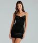 Stand out like the starry night sky in this glitter mini dress for a birthday or club night! It features a sleeveless V-neckline adorned with rhinestone embellished straps and a flattering bodycon silhouette on stretchy velvet fabric. Complete the look with a dazzling statement bracelet and heels.