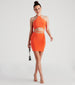 Get struck by this sultry halter mini dress sure to capture every eye in the room! The knit dress features a sleeveless halter neck with tie closure. a strappy cutout waist. and a form-hugging silhouette. Complete the look in sassy platform heels.