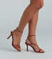 Strut in confidence slaying your day in these faux leather stiletto heels! They feature a sleek open square toe. thin toe straps. and an asymmetrical foot strap that goes around the adjustable ankle strap with buckle closure. Complete the look with a mini handbag for day or night plans!