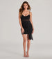 This rhinestone mesh mini dress features a sultry pleated V-neckline and adjustable spaghetti straps for a custom fit. The corset-style bodice flaunts the bodycon mini-length silhouette perfect for pairing with stiletto heels.